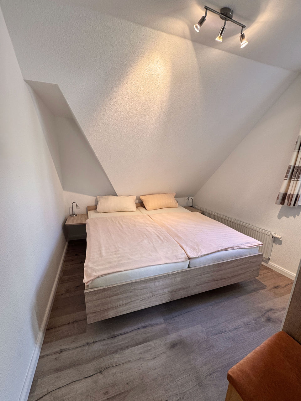 Helle 2-Raum Ferienwohnung mit Süd-West Balkon. Die Wohnung ist mit einer Küchenzeile inklusive Mikrowelle, Spülmaschine und Küchengeräten ausgestattet. WLAN, Kabel-TV und Musikanlage sind ebenfalls vorhanden. Bettwäsche, Handtücher und Geschirrtücher sind inklusive. Außerdem befindet sich ein Kinderstuhl im Haus und ein Kinderreisebett ist in der Wohnung vorhanden.